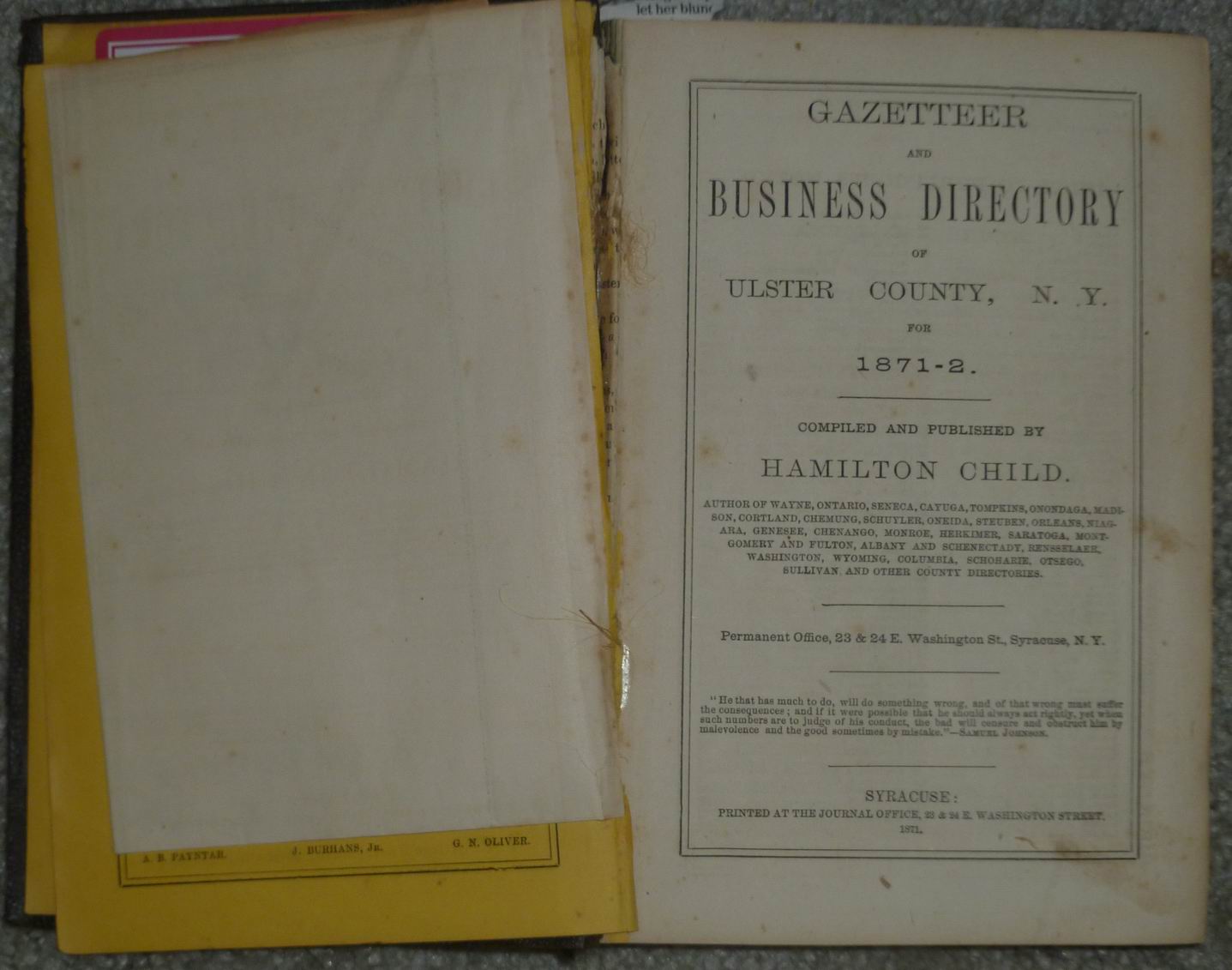 Gazetteer and business Directory of Ulster County NY for 1871-1872