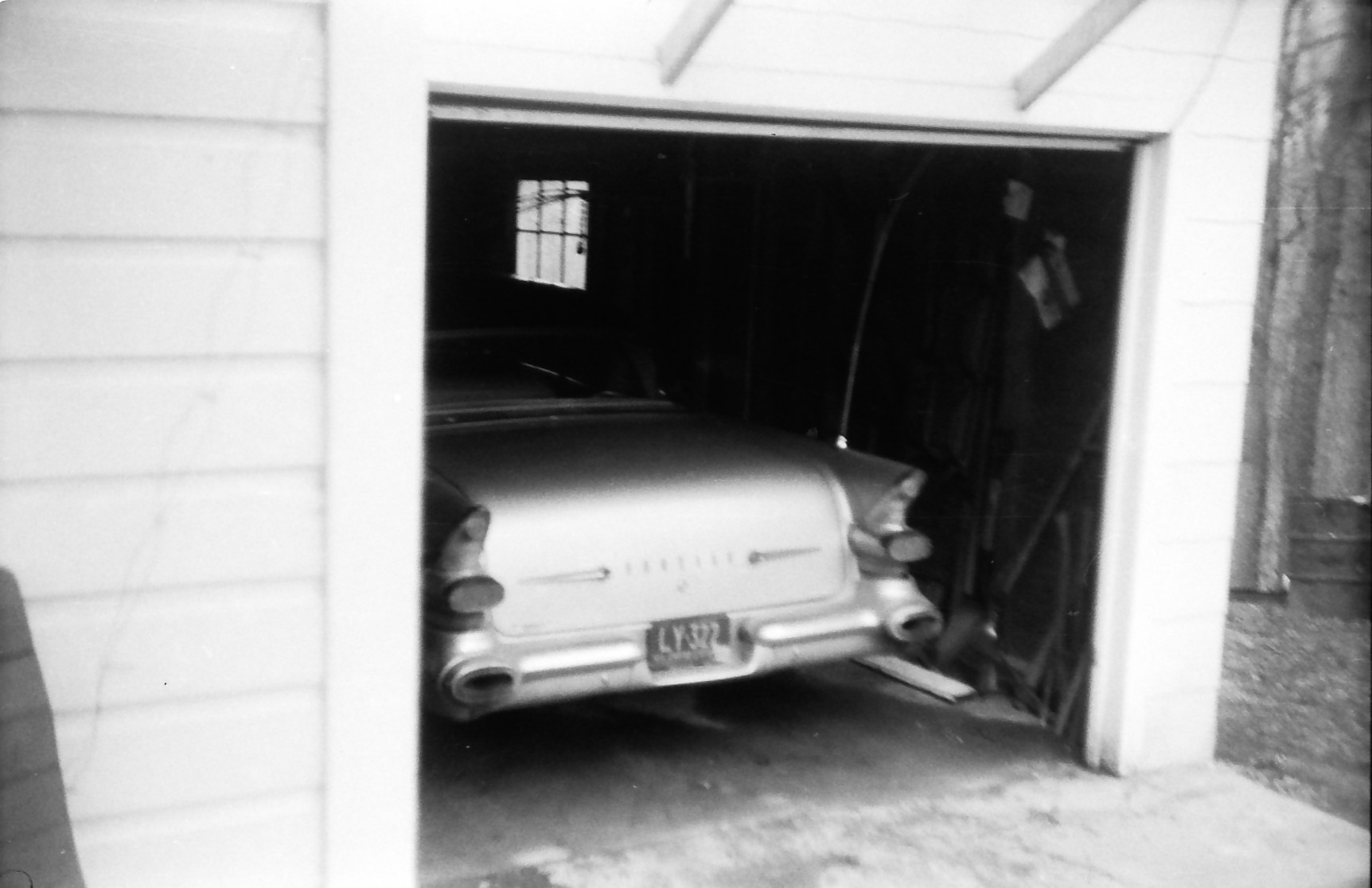 My Mother's 1957 Pontiac Star Fire in her garage on DeBruce road where I grew up |