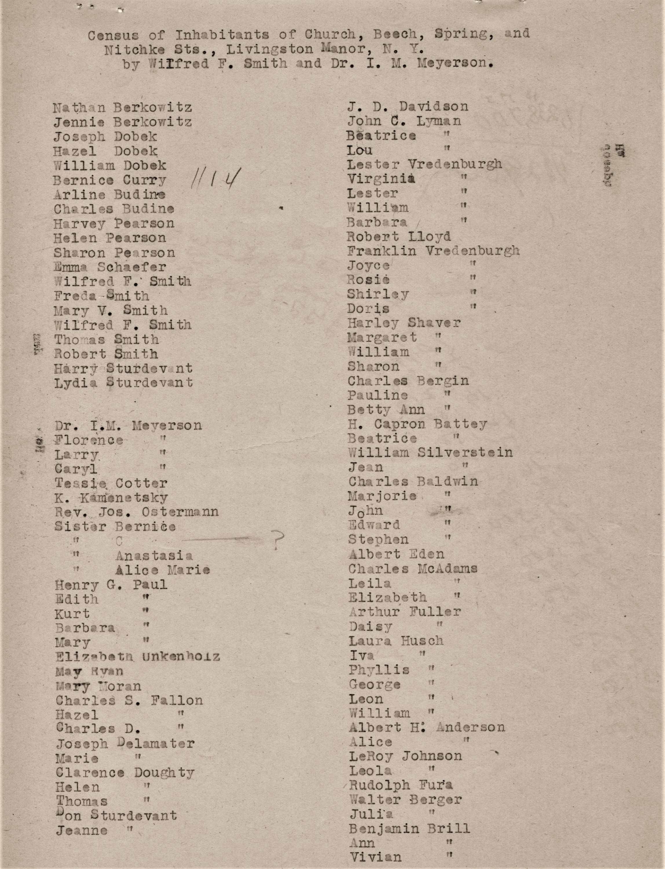 relatively accurate census for Livingston Manor for 1950, a federal census year