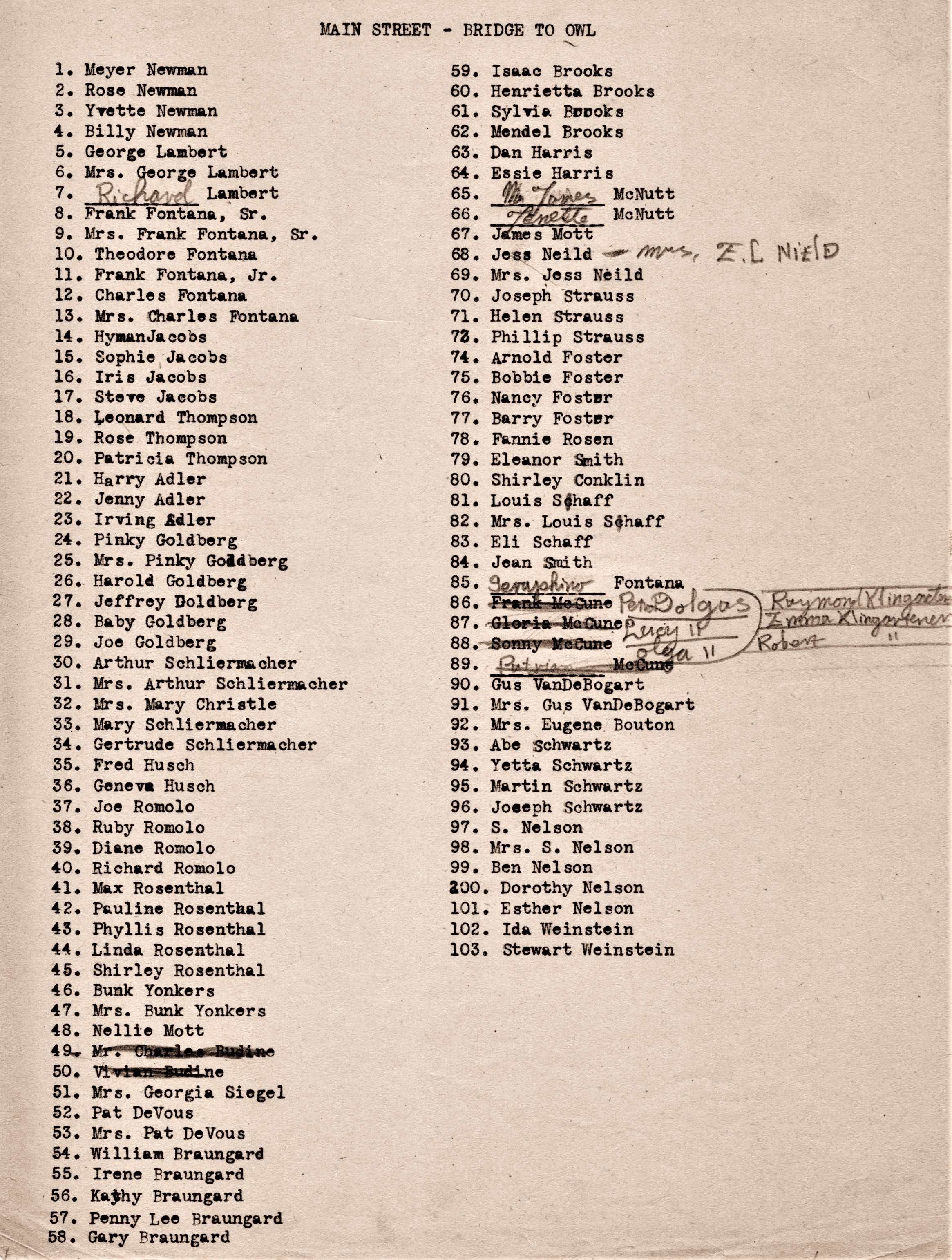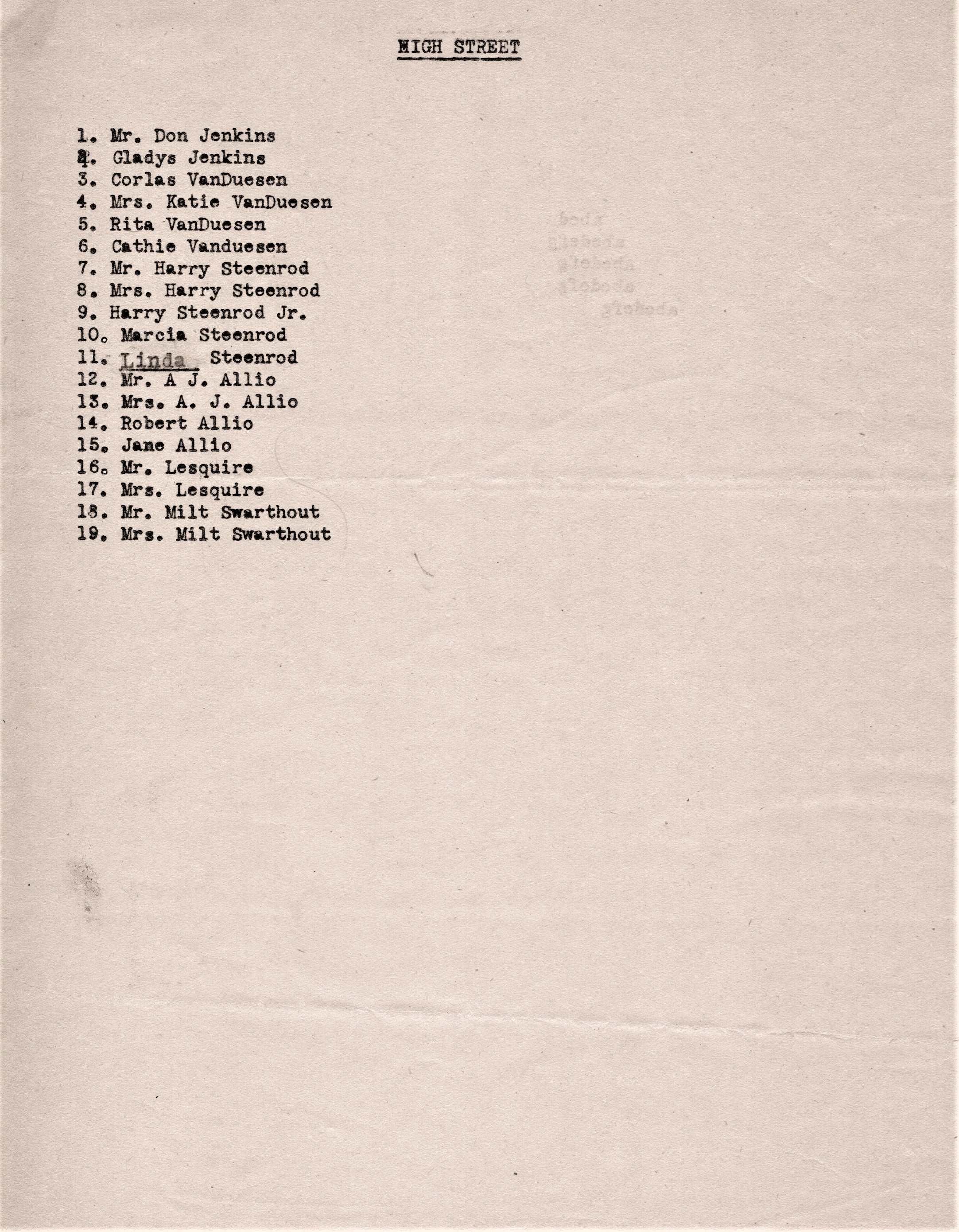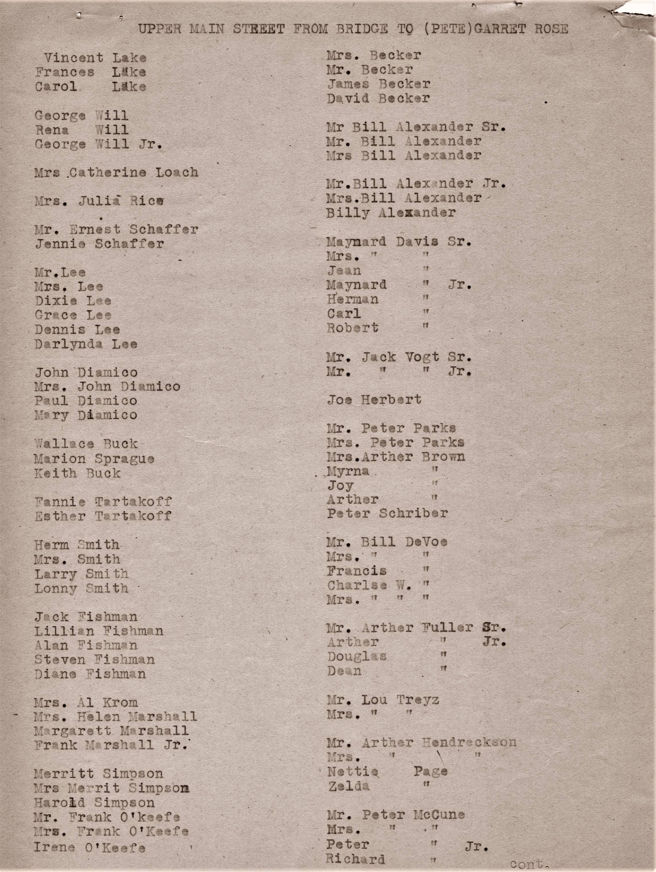 village streets by various Chamber members. These lists note the residences of
