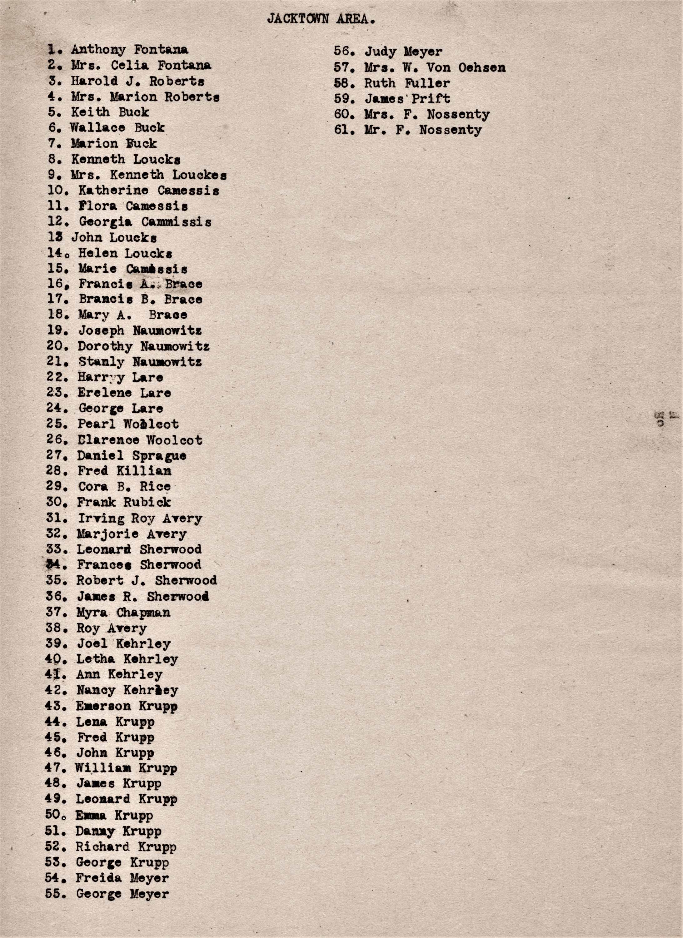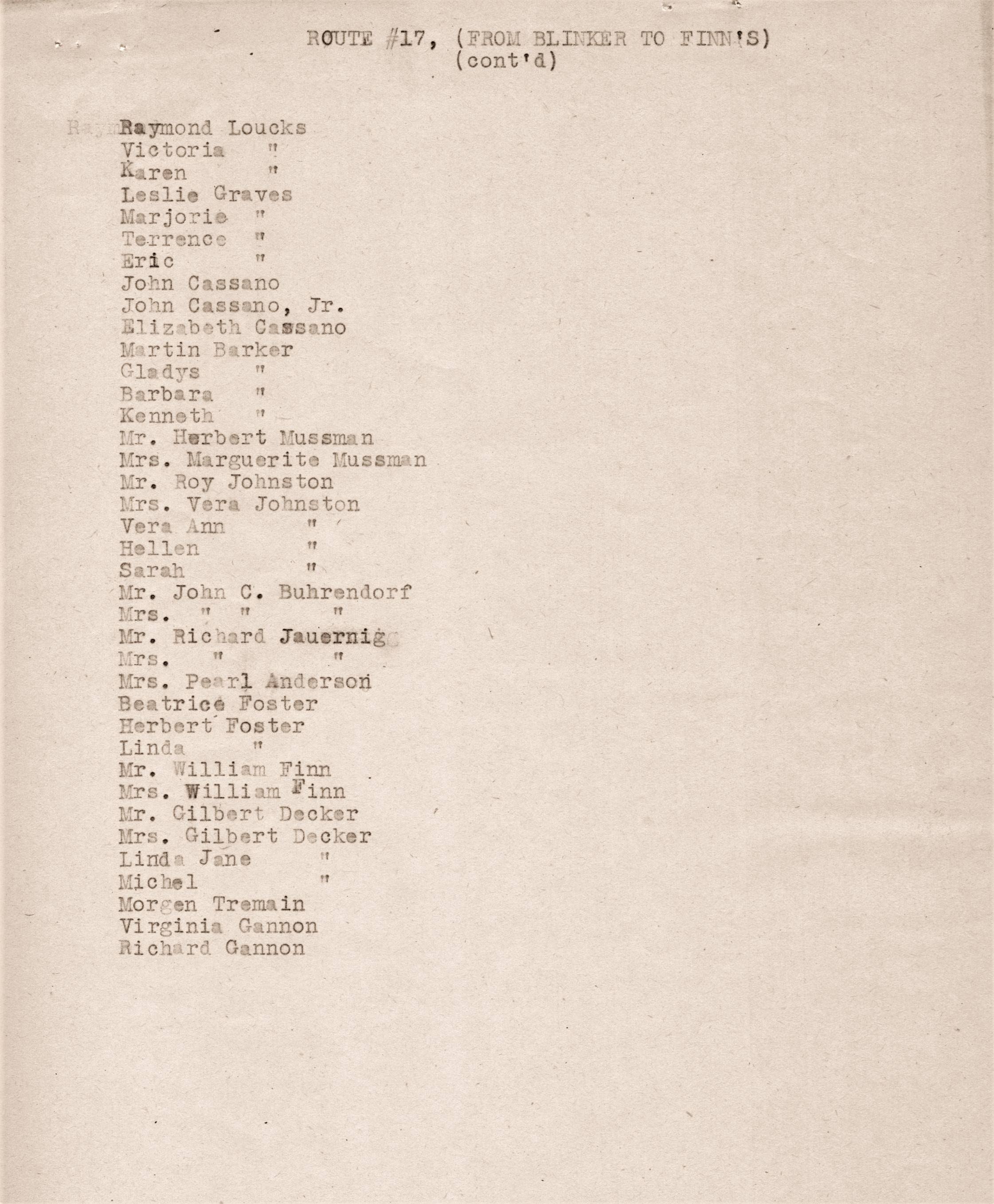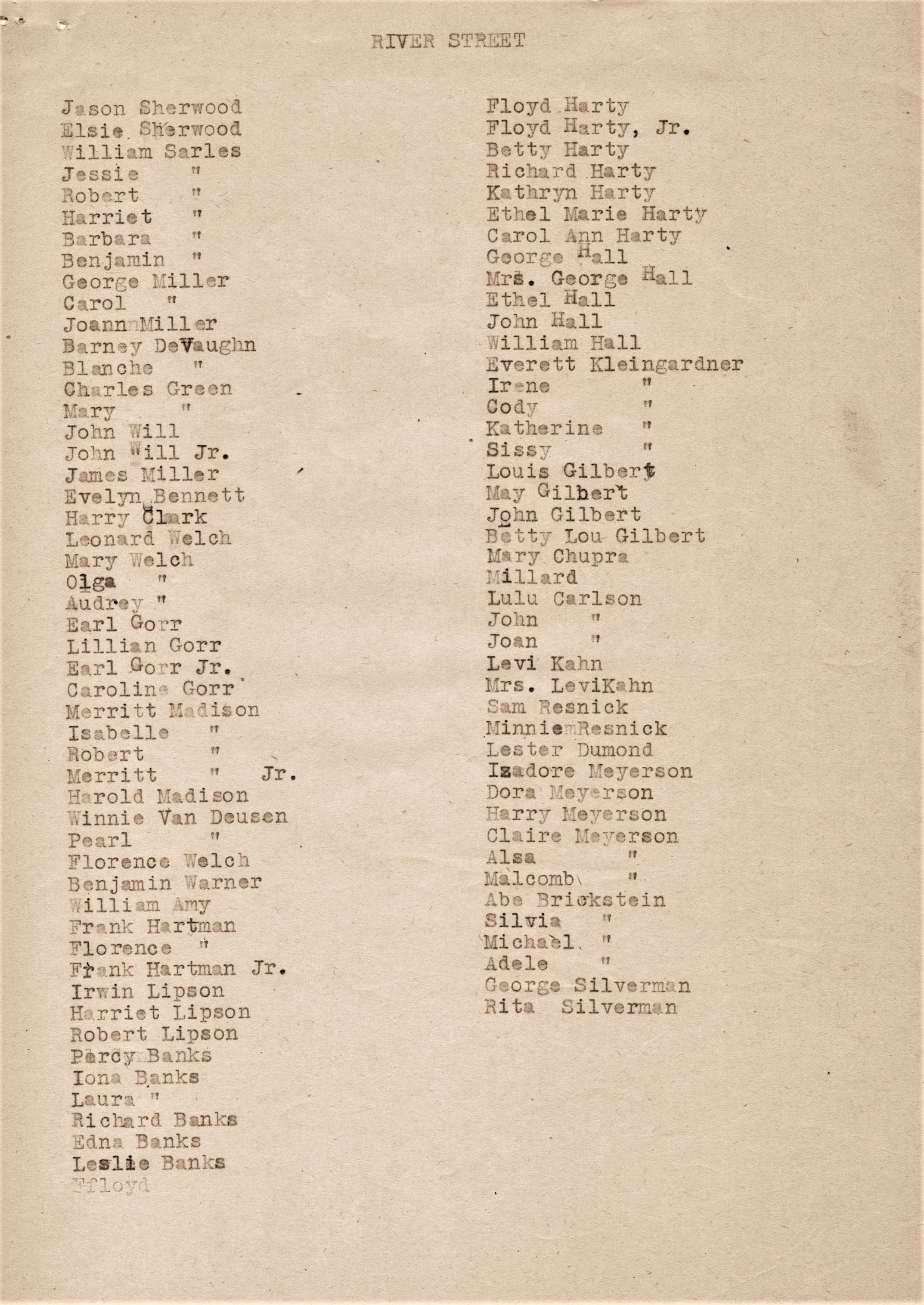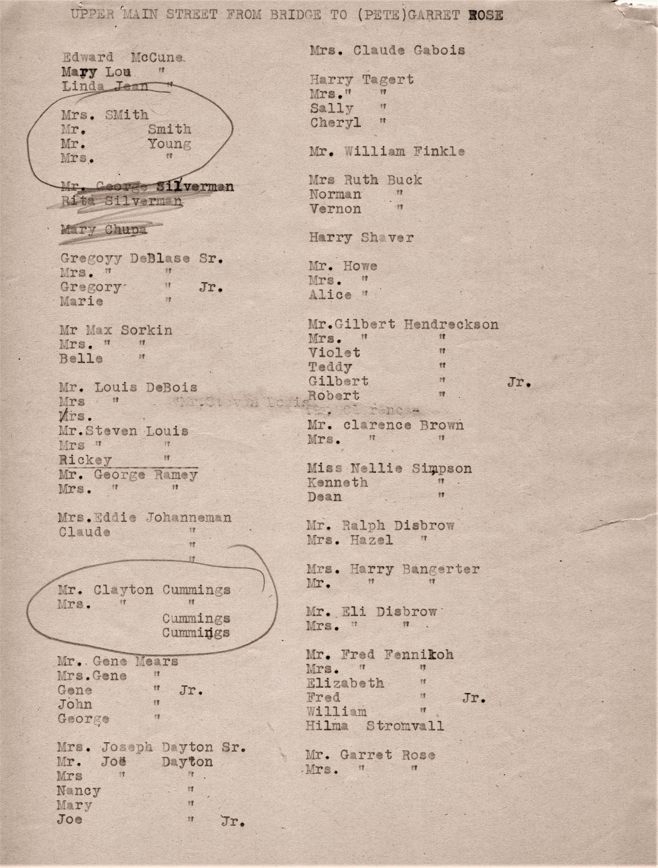 local village families, street by street, along with names of family members.