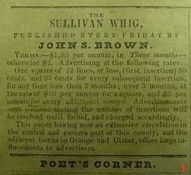 Copy of Sullivan Whig - 1st Sullivan Co newspaper from Monticello